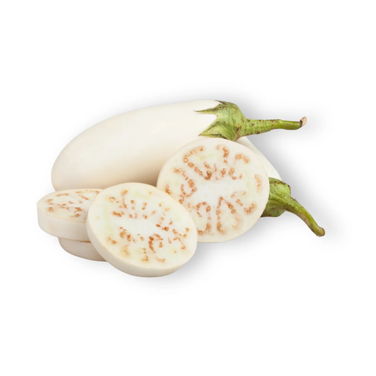 La berenjena blanca (Solanum melongena) es una variante de piel clara y carne muy suave. Destaca por su baja acidez y su excelente rendimiento en cocina, siendo ideal para recetas ligeras y cremosas.
