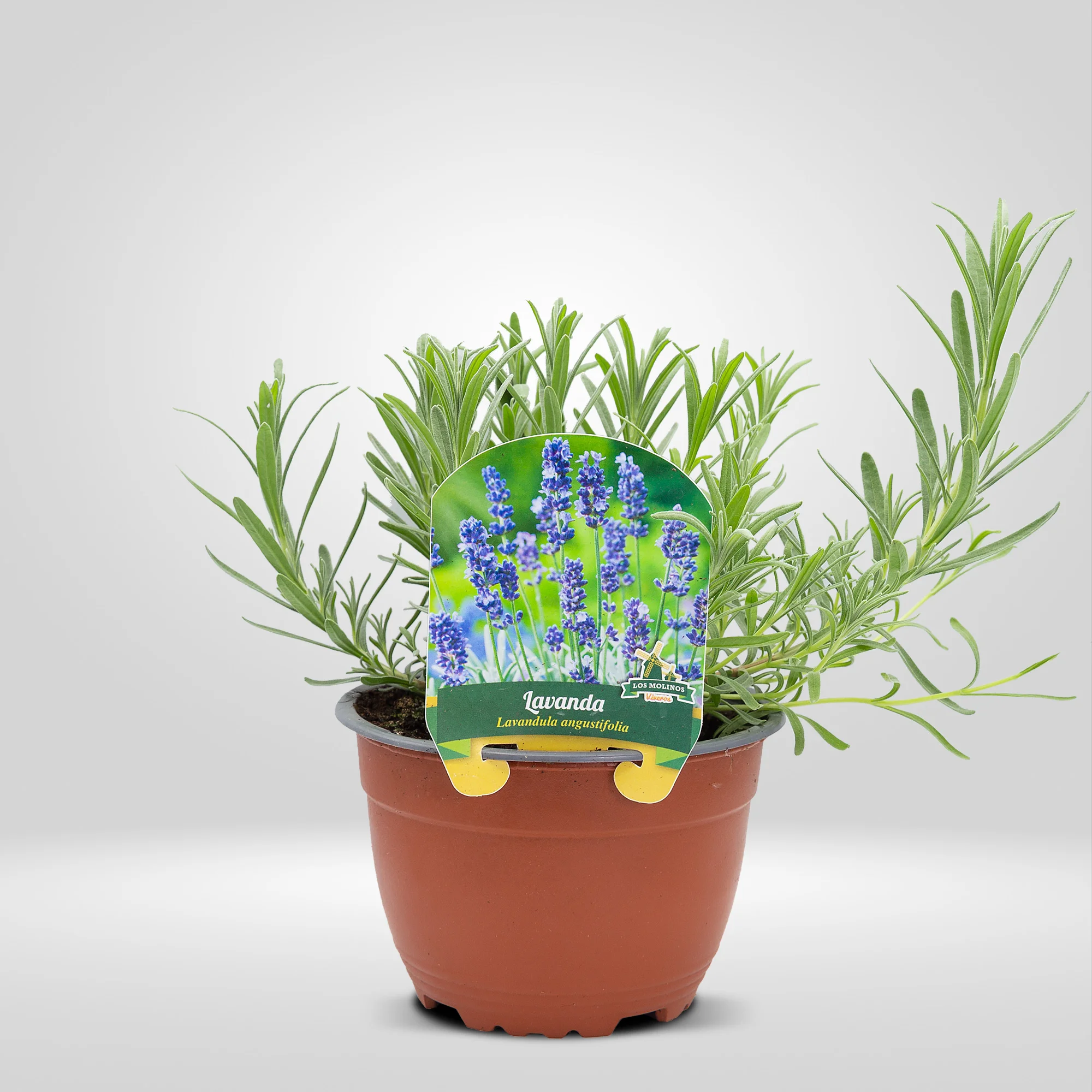 La lavanda (Lavandula angustifolia) es una planta mediterránea de gran valor ornamental y aromático, reconocible por sus flores violáceas y su perfume característico. Se cultiva con facilidad en maceta de 15 cm, siendo ideal para balcones y jardines. Además de su belleza, atrae polinizadores y muestra una excelente tolerancia a la sequía.