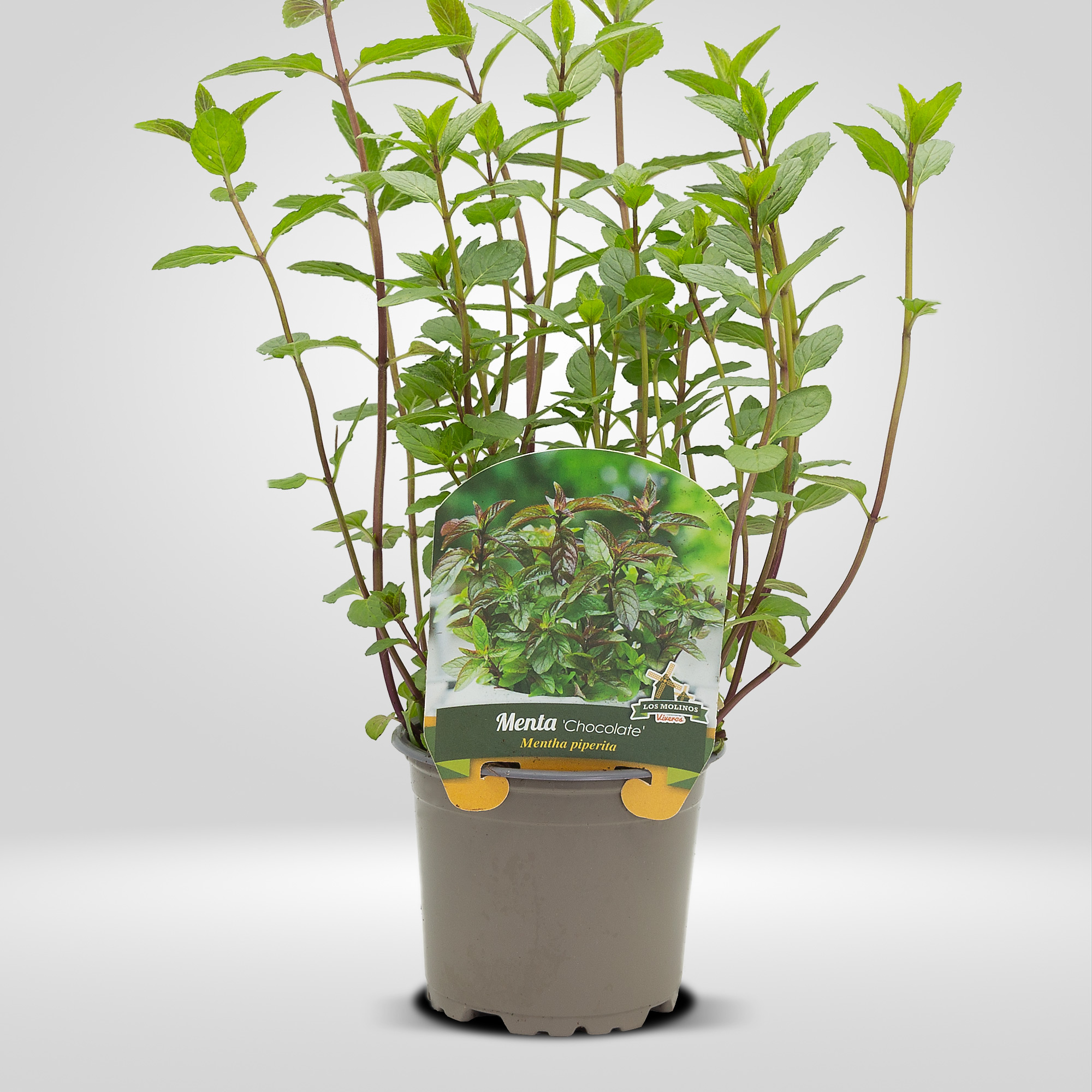 La menta chocolate (Mentha x piperita ‘Chocolate’) se caracteriza por su aroma dulce con notas de cacao, muy agradable en postres e infusiones.