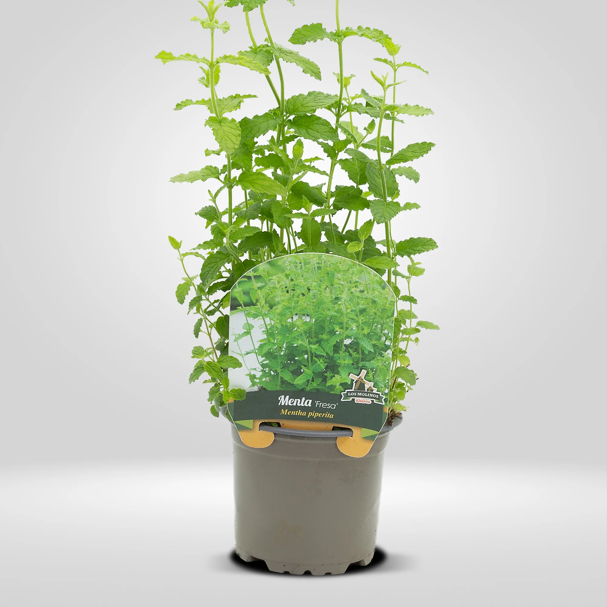 Menta fresa en maceta de 10,5 cm. Planta aromática de aroma afrutado y fresco, ideal para bebidas, postres y terrazas. Envío rápido a toda España.