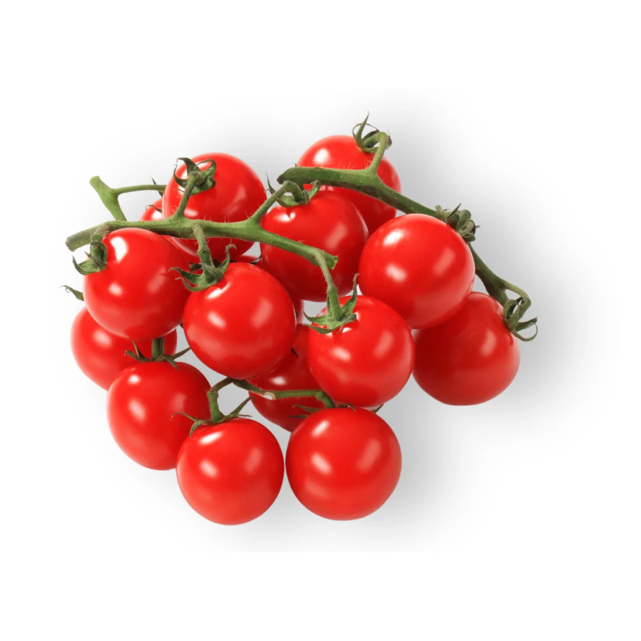 El tomate cherry (Solanum lycopersicum var. cerasiforme) es una variedad pequeña, dulce y muy apreciada en ensaladas y degustaciones gourmet.