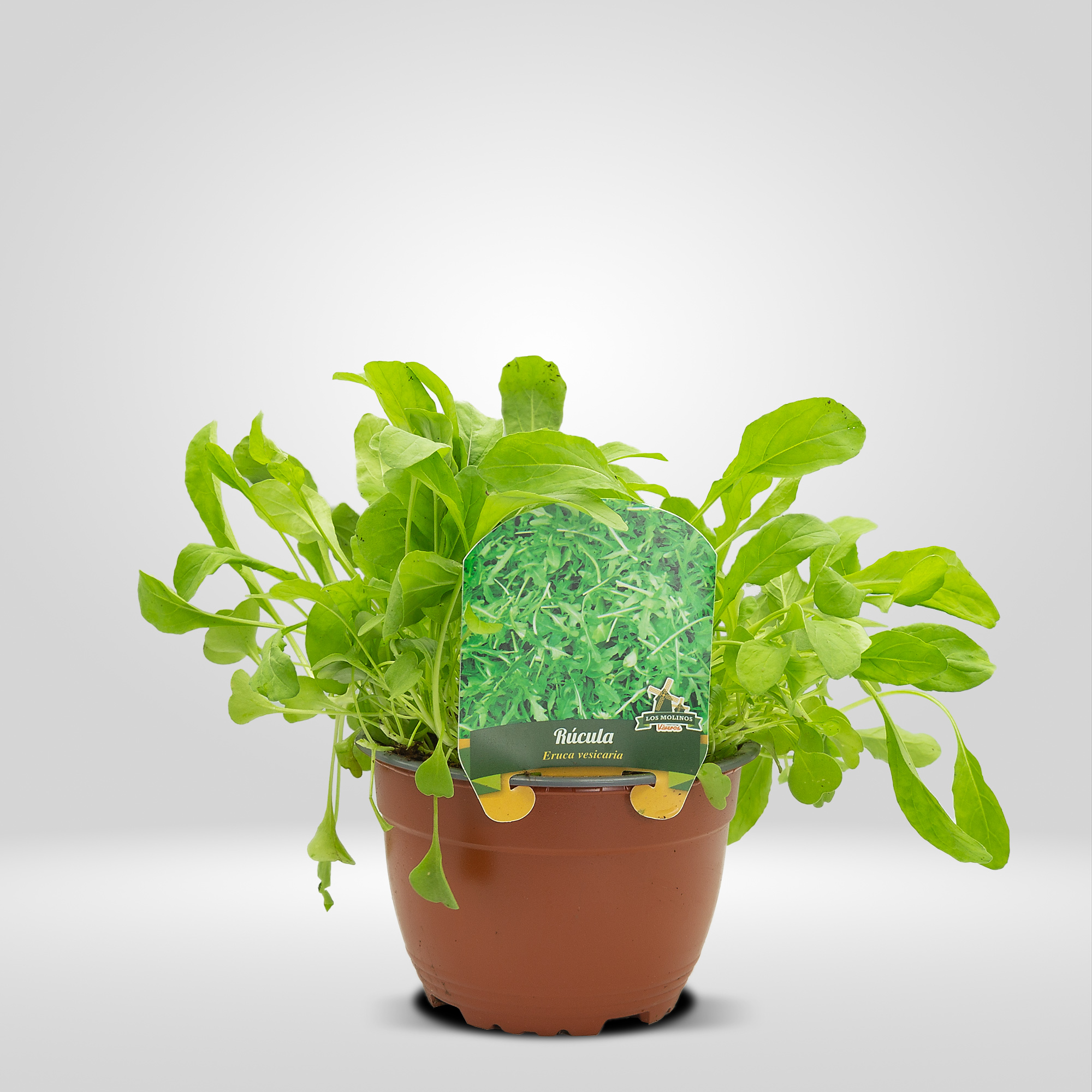 La rúcula (Eruca sativa) es una planta de hoja comestible con sabor ligeramente picante, muy apreciada en ensaladas frescas.