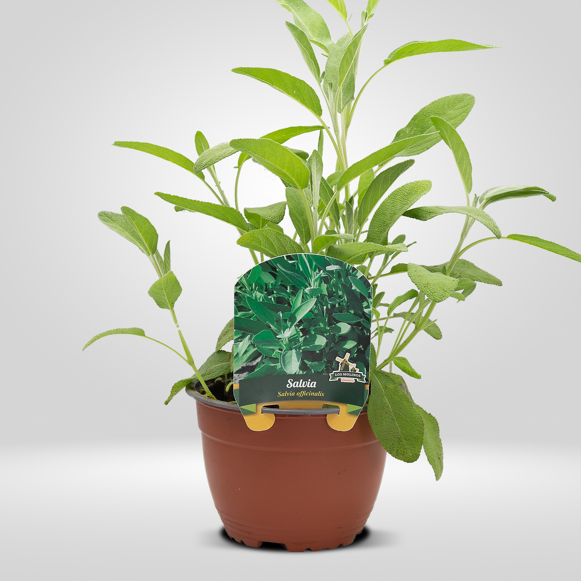 La salvia (Salvia officinalis) es una planta perenne y leñosa, con hojas grises y aromáticas muy utilizadas en cocina y medicina tradicional.
