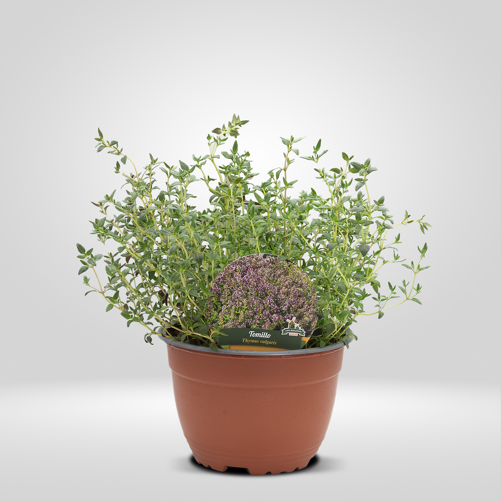 El tomillo (Thymus vulgaris) es una planta aromática perenne, muy resistente, con fuerte aroma y uso frecuente en cocina y medicina natural.